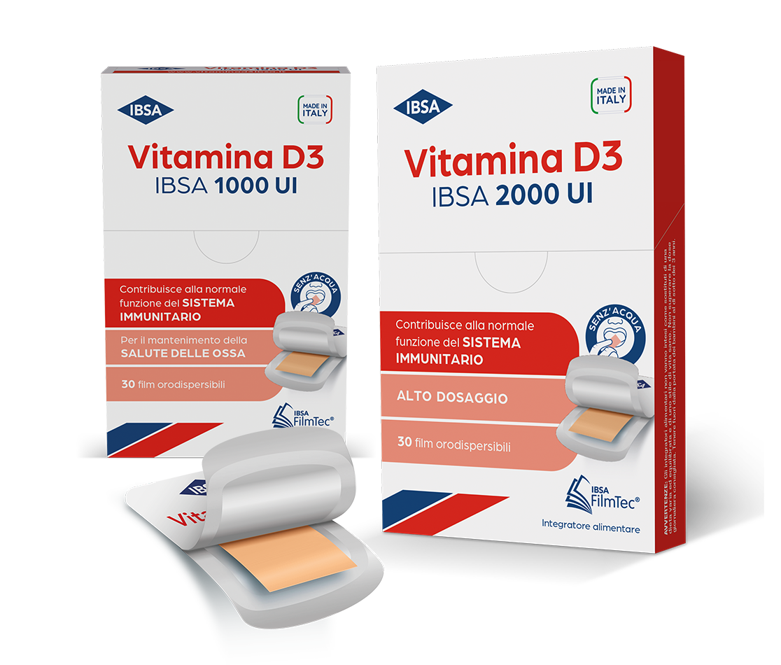 Vitamina D3 IBSA è disponibile in due dosaggi: 1000 UI (Unità Internazionali) nei casi di soggetti a rischio di carenza di Vitamina D e 2000 UI (Unità Internazionali) nei casi di soggetti a forte rischio di carenza di Vitamina D, per età e/o per abitudini di vita.