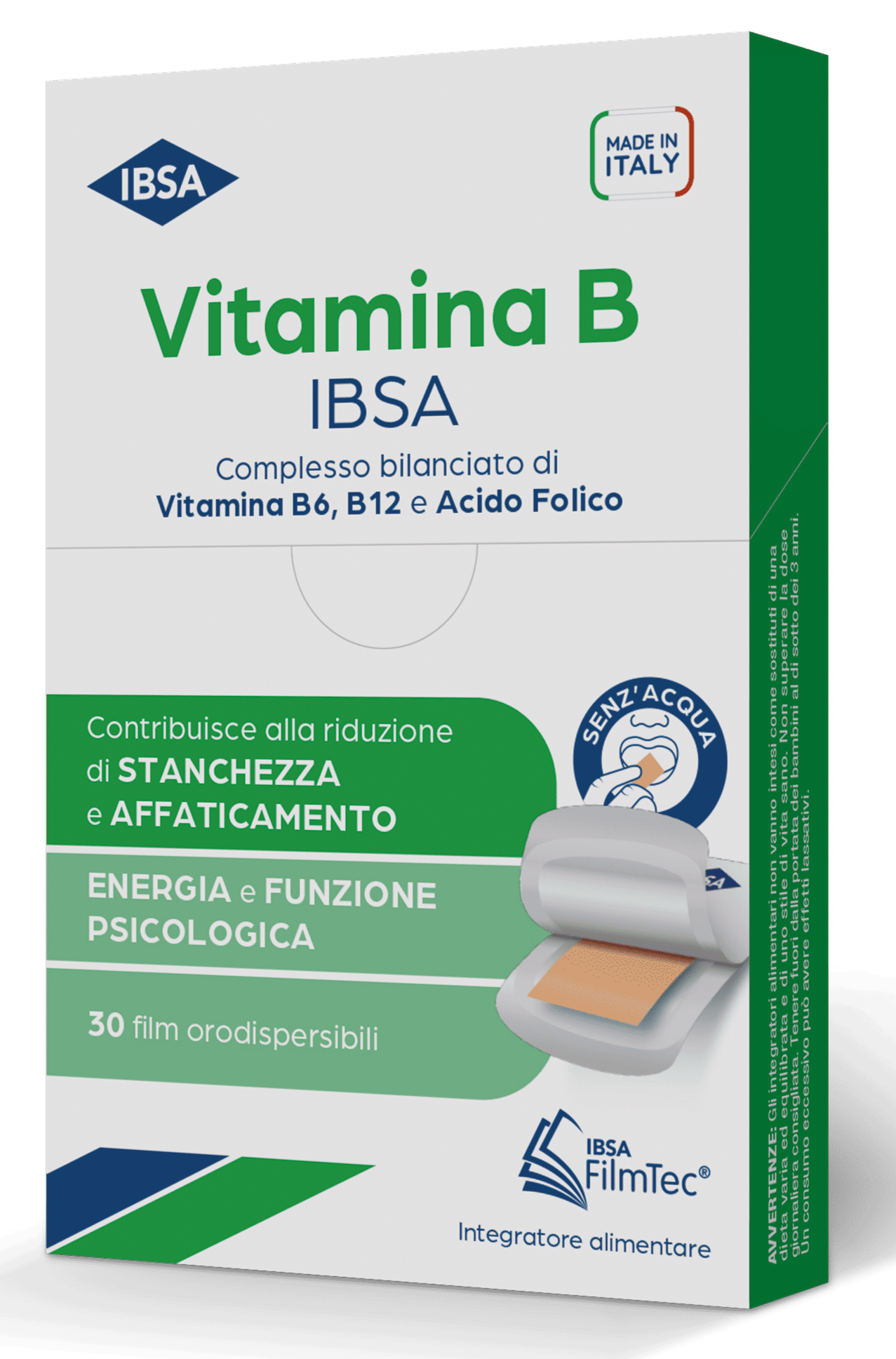 Le Vitamine del gruppo B svolgono un ruolo decisivo in alcune funzioni metaboliche chiave per l’organismo: la Vitamina B6 e B12 contribuiscono alla normale formazione dei globuli rossi, al normale funzionamento del sistema nervoso e al normale metabolismo energetico. La Vitamina B9, o Acido Folico, contribuisce alla normale sintesi degli amminoacidi e interviene nel processo di divisione delle cellule.
